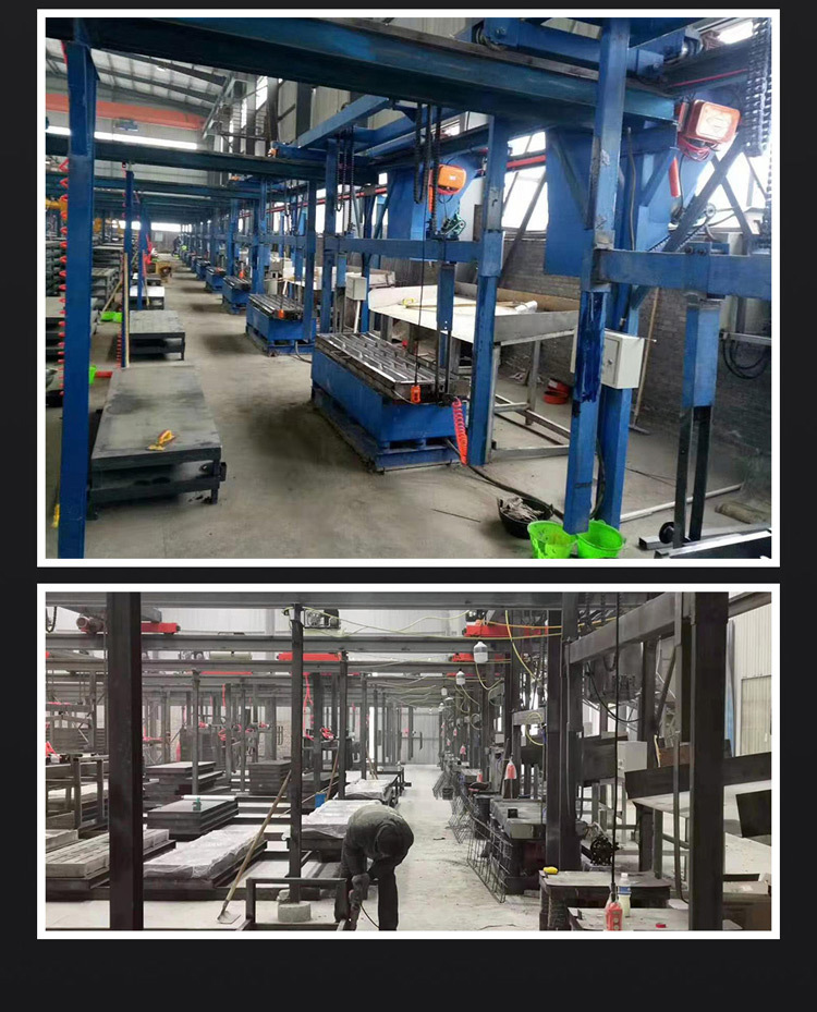 三維振動平臺:有4-8個振動電機,具有上下、左右、前后三維振動效果,振動頻率可調,生產效率高,改變了傳統鑄造行業,三維振動使松散的型砂(干砂)緊密,主要用于樹脂砂、消失模等鑄造生產。功率2.2kwx(4-5),激振力120KN,承載重量12T,承載能力可設計制造至15T。