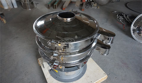 將面粉投入紅薯淀粉振動(dòng)篩中,依靠振動(dòng)電機(jī)的振動(dòng)與篩網(wǎng)網(wǎng)孔大小的不同實(shí)現(xiàn)對(duì)物料的篩分分級(jí)的目的。